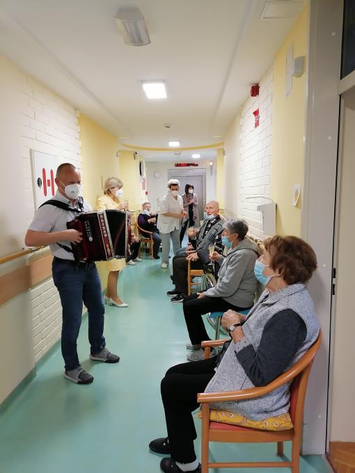 V goste našega Doma smo tokrat preko interne televizije povabili g. Federica Potočnika, dr. med.,  zdravnika, specializanta infektologije v Splošni bolnišnici Celje, sina našega domskega zdravnika Rodolfa Emilia, dr.med. Predstavil nam je razmere v bolnišnici, ter se nam zahvalil, ker smo tako odgovorni in spoštujemo ukrepe, kar pripomore, da je v Domu zelo malo okužb in posledično trenutno ni naših stanovalcev, ki bi potrebovali pomoč, na Covid oddelkih.  Večina oddelkov je zaradi tako hude Covid situacije prilagojenih Covid bolezni in zato se opravičujejo, v koliko so kakšni drugi pregledi, posegi začasno prestavljeni.