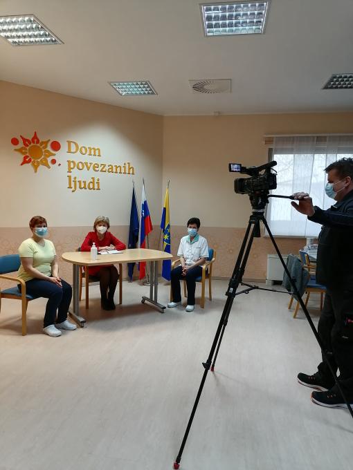 V današnjem poročanju za interno televizijo Doma ob Savinji Celje so sodelovale direktorica Doma, Bojana MAZIL Šolinc, fizioterapevtka Zdenka Zemljak in delovna terapevtka Lucija Pangerl.