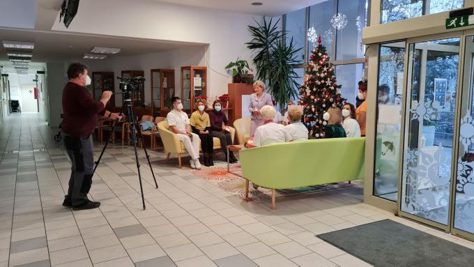 Današnje torkovo interno televizijsko poročanje je potekalo nekoliko drugače kot običajno, saj so direktorica in zaposlene iz različnih služb Doma ob Savinji Celje podelile praznične misli stanovalkam in stanovalcem, uporabnikom dnevnega centra in vsem zaposlenim.