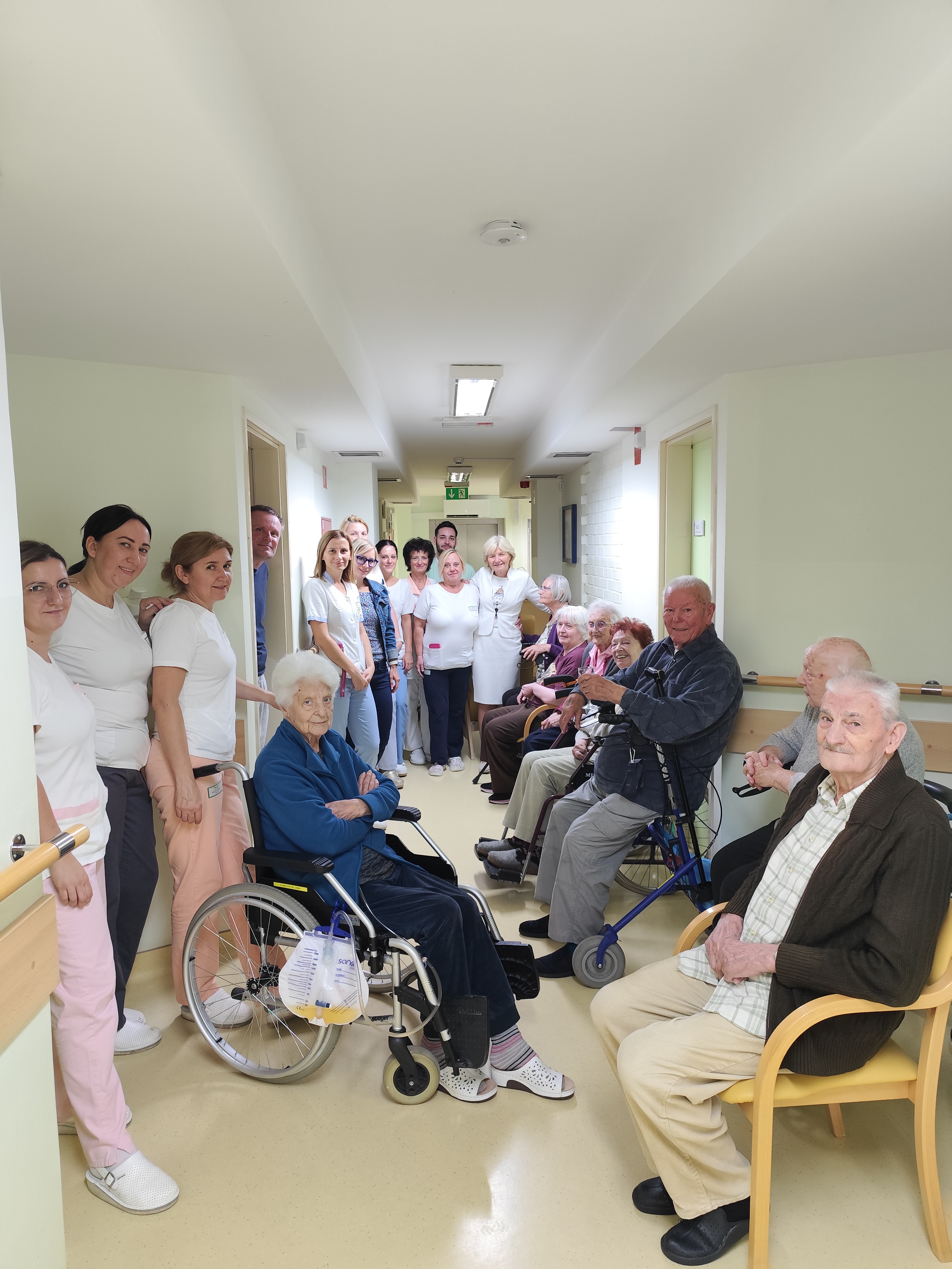 Direktorica Bojana Mazil Šolinc je pozdravila vse prisotne ter povedala, da bo danes nekaj besed namenila predstavitvi praznovanja rojstnih dni v našem Domu, kar je vedno velik dogodek. Mesečno se zberemo v kavarni, kjer stanovalci in obiskovalci Dnevnega centra, rojeni v tem mesecu praznujejo rojstni dan. Pridružijo se nam vedno tudi otroci iz sosednjega vrtca Anice Černejeve, v kuhinji našega Doma spečejo zelo dobro torto. S stanovalci in obiskovalci Dnevnega centra nazdravimo in jim zaželimo poleg zdravja tudi, da se odkrito pogovorimo o vsem pomembnem in da pri tem upoštevamo spoštljivo komunikacijo. Posebej pa praznujemo okrogle jubileje, pri tem vedno upoštevamo želje naših stanovalcev.