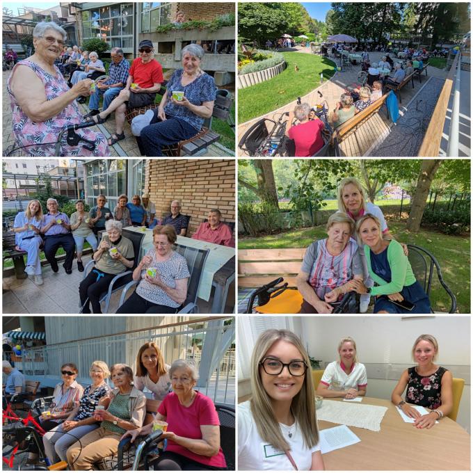 Vodja Drugega dela Doma Nika Mulej je spregovorila o zaščiti v vročih poletnih dneh. Ponovno so se začeli topli dnevi in s tem možnost za nevarna akutna bolezenska stanja. Lahko pride do dehidracije ali pa toplotnega udara, sončarice in toplotne obremenitve telesa. Vse skupaj je spodbudila, da uporabljamo pitnike s svežo hladno vodo, saj s tem preprečimo možnost dehidracije in izčrpanosti telesa. Na sprehod se naj stanovalci odpravijo dopoldan do 10. ure, nato pa se naj zadržujejo v notranjih prostorih, ki naj bodo primerno prezračeni in ohlajeni.