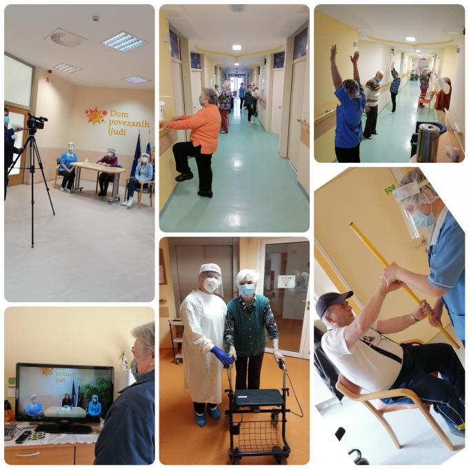 Delovna terapevtka Lucija Pangerl v torkovem jutru pozdravi vse stanovalce in jim pove, da je vesela, ker vidi, da se stvari izboljšujejo. Sedaj smo začeli izvajati tudi fizioterapijo in delovno terapijo v polnem obsegu, zato se s stanovalci že srečujemo po sobah ali na hodnikih. Poskrbeli bomo tudi za predvajanje gibalnih aktivnosti preko interne televizije. Če bodo razmere dopuščale, bomo v našo družbo kmalu povabili glasbenika Gregorja Mlinarja, da nam bo polepšal dan s harmoniko. Obiskali nas bodo tudi rdeči noski, klovni, ki nam bodo ponovno polepšali dan.