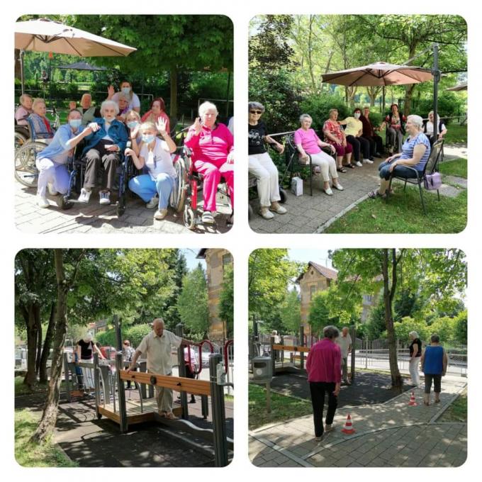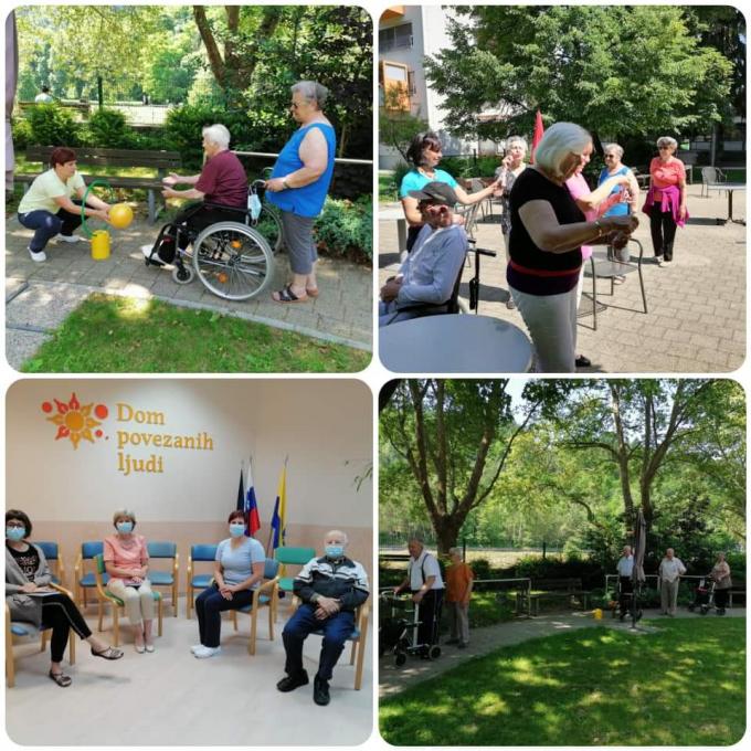 Delovna terapevtka Lucija stanovalce pozdravi in jih seznani, da sedaj gibalne aktivnosti – telovadba, poteka redno od ponedeljka do petka v domskem parku ob 10.30 uri, in so na takšno druženje dobrodošli prav vsi. Povabi jih tudi na druženje z klovneso Vandro, ki poskrbi, da se vedno nasmejimo in si tako krajšamo čas v dnevu. Še vedno je možno prejeti ali zamenjati knjigo iz domske knjižnice, to lahko stanovalci sporočijo na recepcijo ali poiščejo delovni terapevtki, Nevenko in Lucijo.