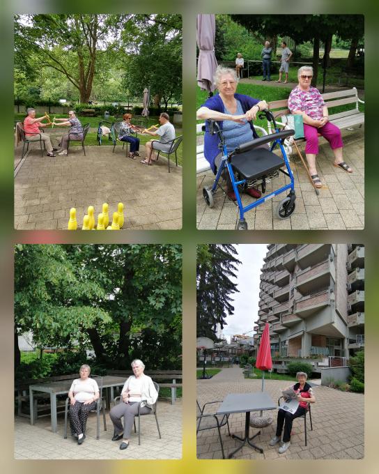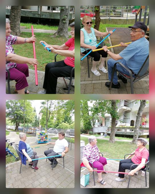 Delovna terapevtka Lucija Pangerl vse stanovalce in sodelavce pozdravi. Stanovalce, ki se želijo priključiti v gibalne aktivnosti, ki potekajo vsak dan ob 10.30 uri v domskem parku, so vljudno vabljeni, ostale slabše pomične stanovalce pa povabi, da kakšno gibalno aktivnost naredijo v svoji sobi ali v postelji, ko se predvajajo gibalne aktivnosti preko interne TV.