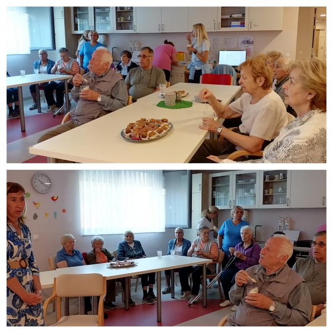 Sporoči, da druženja po nadstropjih Prvega dela Doma danes odpadejo, saj bomo še zadnjo skupino stanovalcev peljali na ogled 6. nadstropja. Tam se bomo prijetno posladkali in se spomnili na pomembne stvari v naših življenjih: spoštovanje, dobri medsebojni odnosi in prijazne besede. Omeni še, da je pomembno spremljanje plakatov in obvestil na oglasnih deskah, ki napovedujejo različne dogodke in aktivnosti.