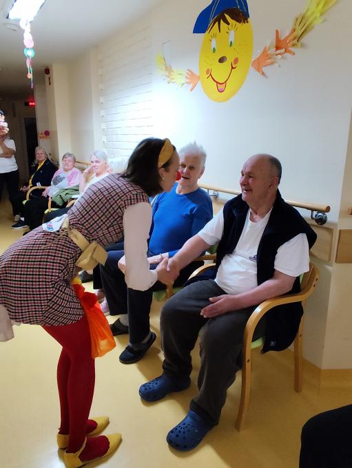 Socialna delavka Katja pove, da je naš stanovalec gospod Jožef Maček napisal pesem z naslovom »Ureditev našega vrta«, ki jo je zatem tudi prebrala in s tem pričarala pomladansko vzdušje kljub deževnemu dnevu.