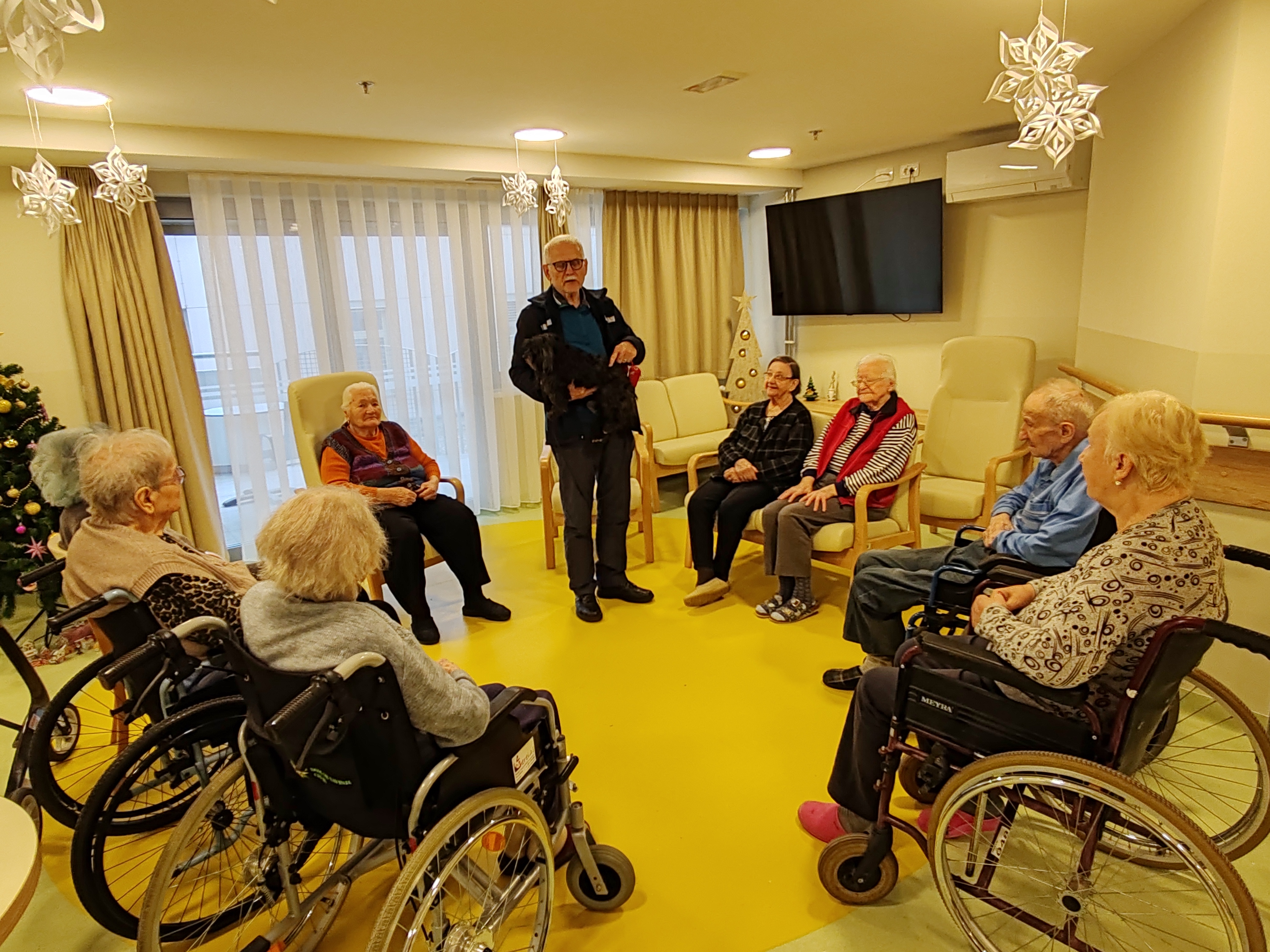 Za konec je vse iskreno nagovorila še delovna terapevtka Sanja Zagoršek. Opozorila je na prednosti letošnje hladne zime, saj bo ta prispevala k manjšemu številu insektov in s tem k omejevanju bolezni, obenem pa bodo rastline lažje prezimile in spomladi bolj bujno zaživele. Z veseljem je sporočila, da so se terapevti po zaključku prenove drugega dela doma ponovno vselili v stare prostore. Stanovalce je povabila k sodelovanju v vseh skupinskih aktivnostih, ki še naprej potekajo po ustaljenem urniku, ter jih spodbudila k rednemu spremljanju oglasnih desk z obvestili in raznovrstnimi povabili.