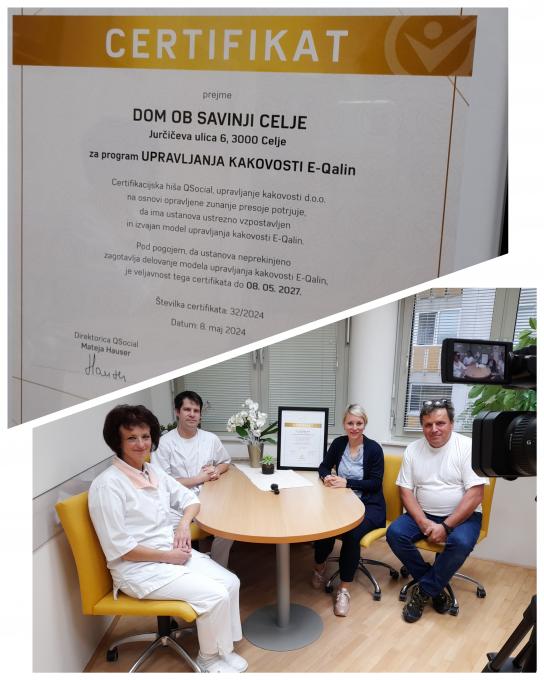»Dom ob Savinji Celje si je s prejemom prvega mednarodnega certifikata kakovosti utrdil mesto v E-Qalin skupnosti! Po pridobitvi potrdila Dom kakovosti na podlagi samoocene pred leti, so sedaj uspešno opravili tudi zunanjo certifikacijsko presojo.